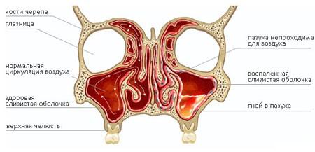 гайморит - воспаление слизистой оболочки верхнечелюстных или гайморовых пазух;